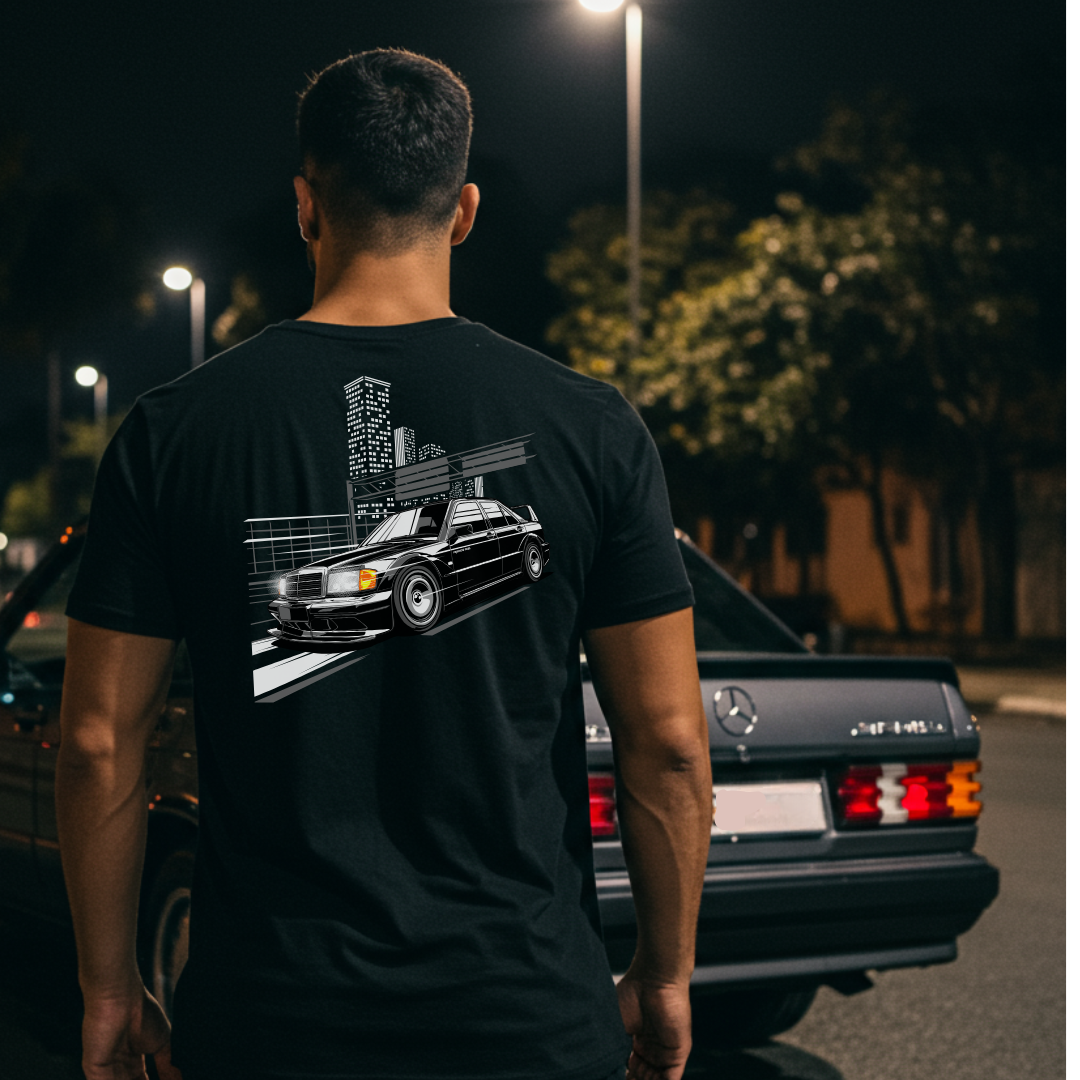 A camiseta com a estampa da Mercedes 190E EVOII celebra essa fusão de engenharia impecável e design lendário. Perfeita para quem vive a emoção das pistas e quer levar consigo um pedaço dessa história, com autenticidade e muito estilo!