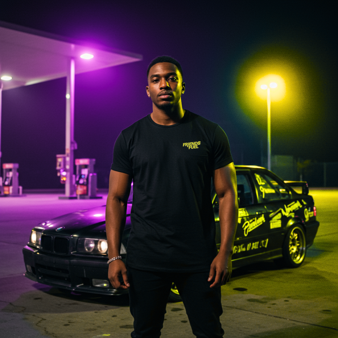Se você vive para os eventos noturnos do FriendsFuel, onde o cheiro de borracha queimada e o ronco dos motores dominam, essa camiseta foi feita para você! Feita com tecido de alta qualidade, ela oferece conforto para o dia a dia ou para marcar presença nos encontros automotivos.