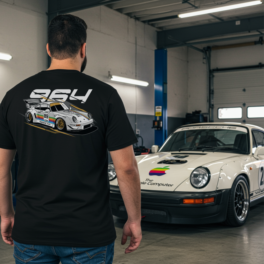 A camiseta com a estampa da Porsche 964 Apple Computer celebra essa fusão única entre automobilismo e design icônico. Perfeita para quem aprecia a história das pistas e quer levar um pedaço dessa lenda consigo, com autenticidade e muito estilo!