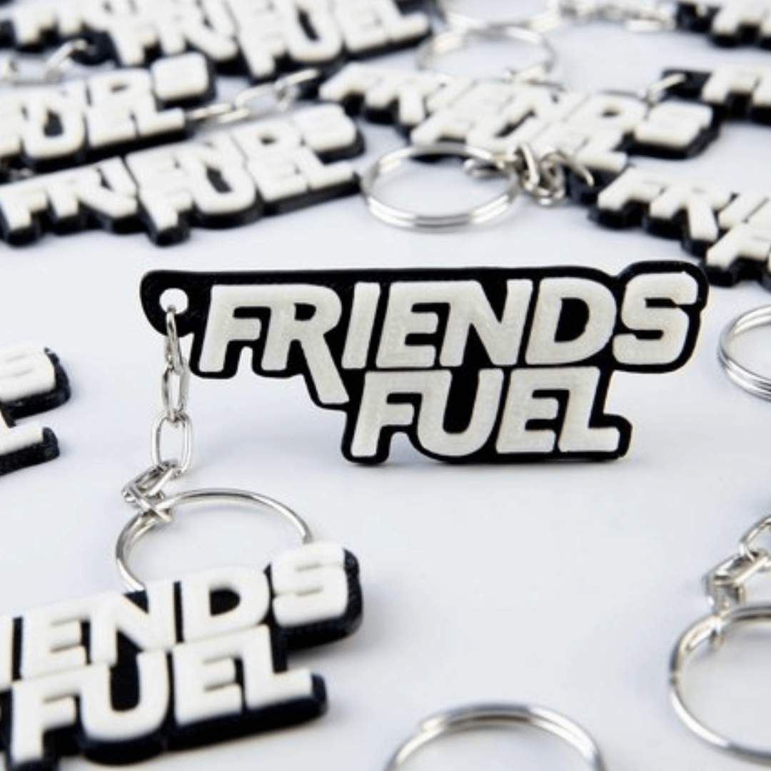O chaveiro 3D da Friendsfuel é o acessório perfeito para quem vive a paixão pelo automobilismo. Fabricado em impressora 3D com um design arrojado e em alto-relevo, ele exibe o icônico logotipo da marca com detalhes em preto e branco.